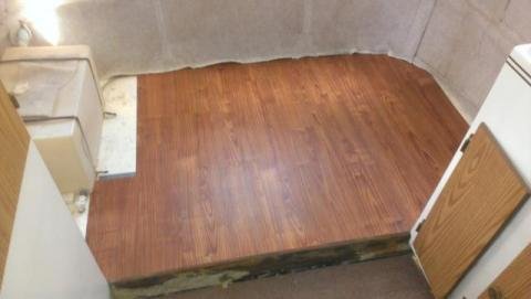 The Allure vinyl plank flooring is impervious to most anything, yet still has the same look as laminate planks. Joe Z on this site took a piece and immersed it in a bucket of water for several days and it was still perfect. This stuff not only looks great, it's simple to install and cut, and it holds up to trailer life which is why I've done all my trailers the last 10+ years with Allure flooring. I believe Home Depot is one of the few vendors for it, but there are some similar vinyl plank flooring products at other lumber outlets.