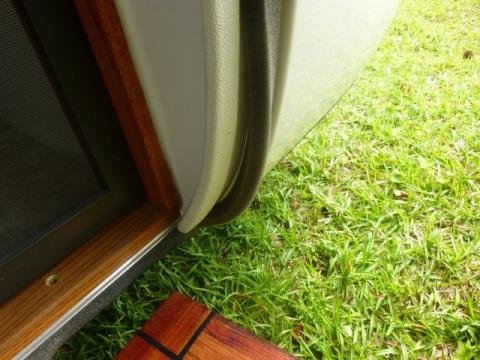 32) Have Scamp install NEW (rubber) entrance door seal (they have in stock) installed in place of the foam one used in the past on our scampers. The old form ones leak at the bottom of the door all the time, they slid over in their groove and half way down the door there is very little sealing if any.