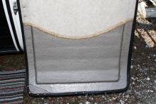 Your door looks great I just took our 98 scamp door off yesterday ....I sat it on a couple of sawhorses with padding with the rat fur facing up I removed the rusty door latch and handle the rat fur was extremely soiled from the door handle down , it is not a perfect match however I found material dye that is pretty close carefully I taped off the window and trim and gave it 2 coats and will be putting the 3rd coat onto today out in the sunshine .....I will try to post some before and after pictures , when I get it finished ..