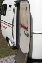 As seen at the 2015 FL Scamp Camp, this was probably the most frequent inquiry I received. Installing better weather stripping around Scamp doors will help keep the elements from penetrating inside, but putting rat fur on the bottom of any door is just poor design. It’s fighting an uphill battle of cleaning maintenance, and who wants to spend their time cleaning door fabric every time they move their trailer?