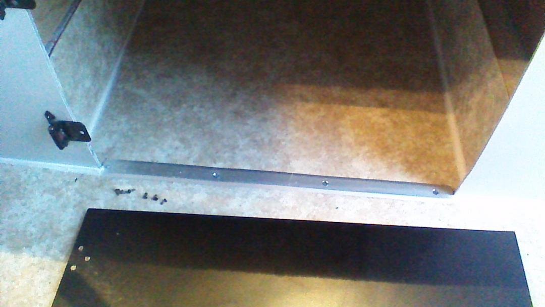 Looking for any ideas for cabinet doors mostly the one under the couch finding the door that is on there now screws will not hold on they are to small for the door but if they were any longer they would come out the other side. Thinking of making a drawer or just leave open and trim out the edges. Thank you for any input.