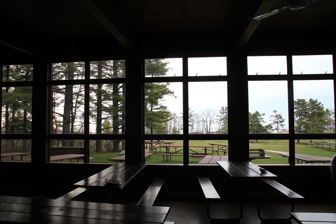 We did have the pavilion rented overlooking the sand dunes and lake Michigan and had a nice fire...