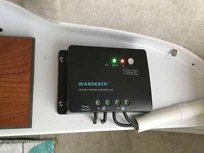 I mounted the charge controller on the face of the front cabinet just below where my wires came through and ran them through the cabinet into the controller then down the side wall in a wire channel velcro'd to the rat fur.