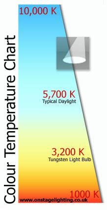** Note: Bulbs are rated based on a "Color Temperature" chart, (see Below) the lower the temperature the yellower the color of light produced, the higher the number the Whiter/Bluer the light becomes, For Example: