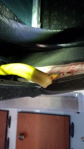 It might not be clear what you can see i the photos, but it is the A/C unit and seal on top, then the fiberglass, then the insulation and rat fur. I see no wood.