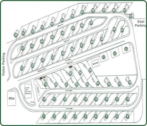 Individual spaces in the park can not be reserved, however if you have a mobility problem, the park will do their best to locate you in a handicap space or a space convenient to the clubhouse or restrooms. All sites have full hookups. The fees are for 2 adults per rig.