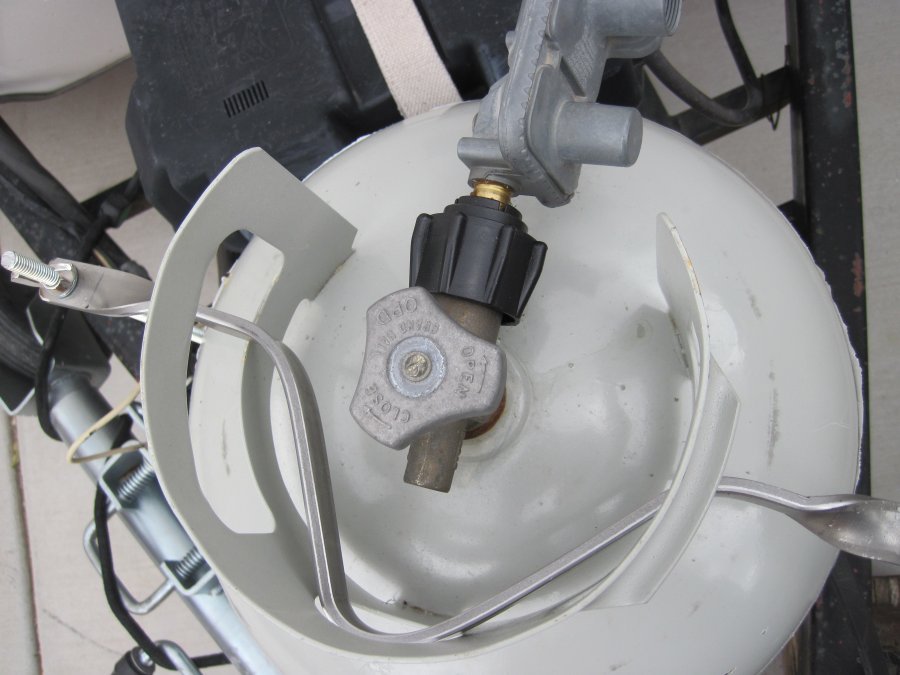 Using strap steel and threaded rod from Lowes I designed a "no tools" required propane switch system.