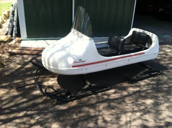 Very nice 1 of a kind snowmobile cutter sleigh made in Minnesota by scamp camper mfg great for waconia Minnesota orphan show this year or pull the kids around very stable I need the room so this is one of my many collectable to go