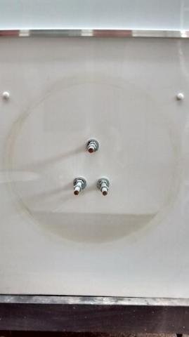 I put the accurate description of my problem in the subject line, but I really just wanted to type, "Help!!" I noted this happening this spring, but forgot entirely as the Scamp sat for most of the summer. In getting it polished up for a fall trip, I realized that water had collected behind the spare, along with a good deal of grime. The picture shows it after I took the magic eraser sponge and "Awesome" cleaner to it. I'm afraid it's under the surface for good. (bad)