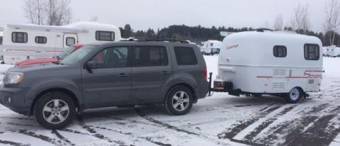 Pearl is below the 50% pull load of our 2011 Pilot with the standard build in tow pkg. Have the P2 electric braking device installed at Camping World. Traveling light over the mountains, not planning on adding water at all til camping in Arches NP. Will be traveling with two adults, and normal camping gear that will ride in Pilot.   Have the rear receiver for adding a platform to carry the messy smelly hiking shoes & dirty laundry - is this a good idea or adding more weight to rear of trailer in mountains?