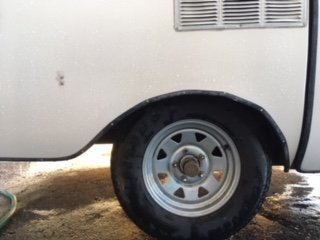 Check the top of the wheel wells and see if you have any rub marks on the fiberglass where the wheel will make contact when it bottoms out on a worn axle. Place your clenched fist vertically on the top of the tire and see if you have clearance above the fist to the bottom of the well.