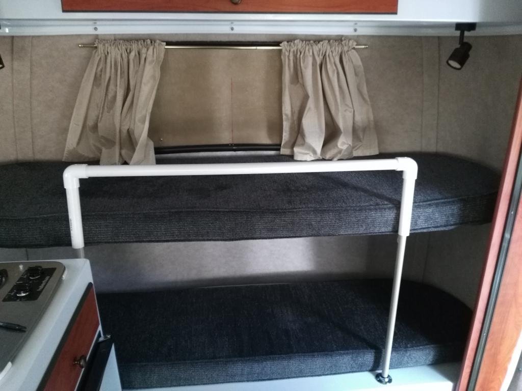 Took the granddaughter camping for the first time. Of course she wanted the upper bunk. We used a section of that Rubbermaid shelving to keep her contained. She loved it. Also works well to contain gobs of stuff when we are on the road.