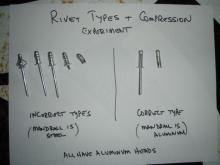 I think I have finally fiquired it out. Some rivets have aluminum heads with steel mandrels and others have aluminum heads with aluminum mandrels. I experiemented with both to see how they collapsed when riveted and found that the steel ones are too hard and the shaft of the head collapses in the middle first and not at the head - ie, they don't allow the nut on the inside of the trailer to bite into the end of the rivet. Then using rivets with both aluminum head and mandrel I found that they swedge in and expand at the head of the rivet first allowing the nut firmly bite into the end of the rivet. Once that happens the rivet then compresses properly and firmly holds the trailer body together. I did a couple on the trailer and was quite pleased with the results.