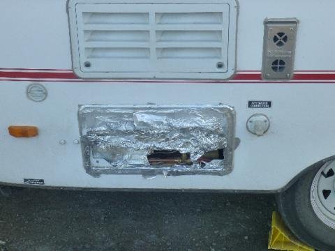 I am back for a few minutes, I want to post photos of what I had to do for immediate coverage of my Refer compartment in case this happens to you at any time. You may have a better way of doing this so please let me know if you do.